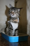Мусенька у меня "приобрелась" по пути с работы в продуктовый магазин в обеденное время. В дворе жилого дома бегали мальчишки, а за ними катался глубоко беременный "клубок". Мальчишки остановились чем то занимаются и клубок сидит смотрит. На обратном пути мальчишек нет, а котейка сидит. От сосиски не отказалась. На следующий день в обед на "кис-кис" котейка выбежала из тех же кустов. Кошка ласковая, мурчавая. Четыре дня наблюдала, думала может на свободном выгуле, но уши все черные, худоба такая, что шерстка на тазовых костях домиком стоит. Никто ею не интерисуется, дворник местного детсада сказал несколько дней уже здесь ходит. А колобок то в это время все круглеет. В общем в пятницу она была мной отвезена в ПЛС, с моими мольбами не родить в машине.