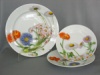 Праздничная у меня есть такая - чешская белая с золотым ободком. И есть тарелки "Катюша" - супер костяной японский фарфор и бледный серо-розовый узор кружевной по краям... дареное тож.