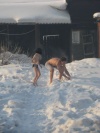 О! Гляньте-ка! За этой снежной женщиной бежит маньяк с бородой?ну надо же!!! и точно!