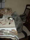 я на ватных ногах прошла в кухню знакомиться с полтергейстом, а там Фиеста в Фединой позе чавкает, а вилку с ножом мордулетом задевает, а они и позвякивают..