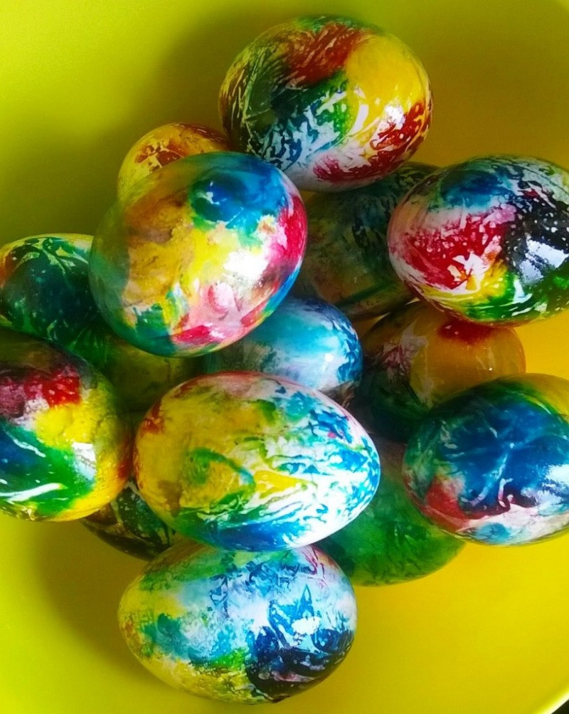 Яйца в данном случае могут быть любые - хоть белые, хоть коричневые, но на белых краска лучше видна, конечно.