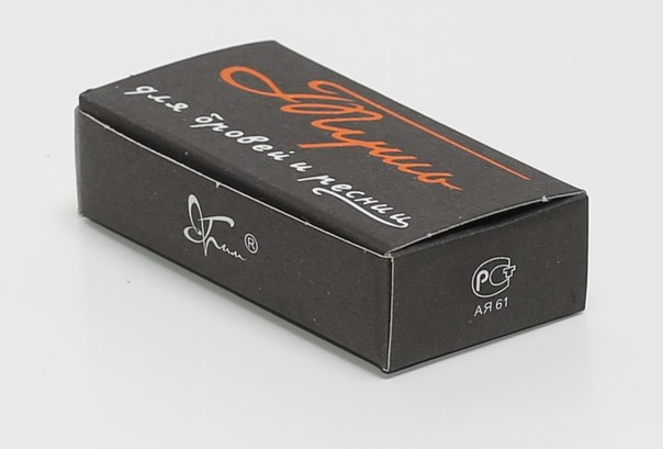 Коробочка картонная с красными и белыми буквами и пластиковой щеточкой))