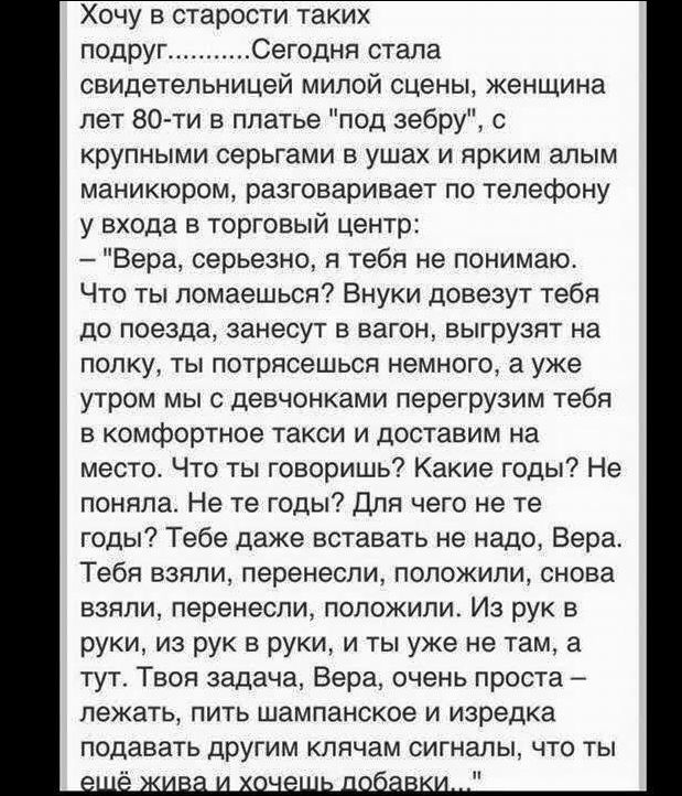 И попробуй ещё отказать ему в незамедлительном следовании. Тебе всенепременно скажут: Дура, ты себя в зеркало-то видела, а? Тебе ж лет пятьдесят уже, и это только на морде. Сзади-то вообще все шестьдесят восемь. Ломаться ты ещё могла лет тридцать тому назад, а сейчас ты обязана вспотеть от волнения, покраснеть от предвкушения, и икнуть от восхищения. Тебя чо, каждый день мужики на свидание приглашают что ли? И заметь, с тебя даже денег за это не берут, хотя и следовало бы.