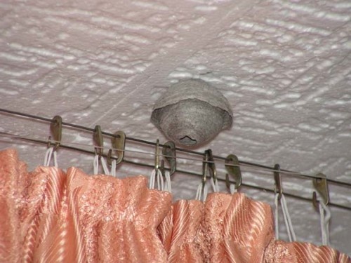 К нам тоже, помню, залетали... Мы с мамой в ужасе были, когда заметили прямо по центру карниза какую-то постороннюю штуковину диаметром с пятикопеечную советскую монету... : )) зачатком улья оказался при ближайшем рассмотрении. Но головы мы поломали с ней над природой явления : ) Так он так присобачен был, что ножом еле отскоблили и чем они только его приклеивают... какие-то жидкие гвозди.