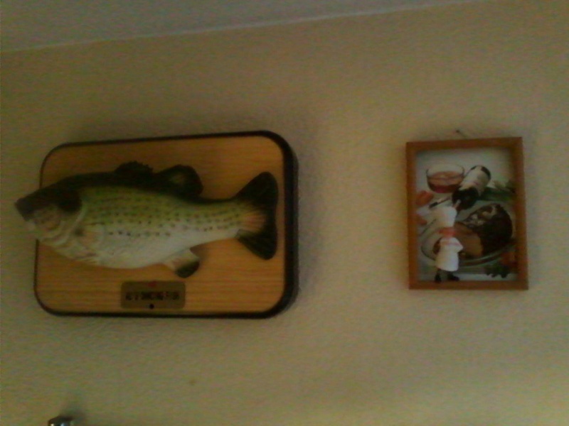Другое дело, что я не завожу топиков пока, потому что я стараюсь каждый день что-нибудь полезное создать тут в немецком доме и на участке. Вот сейчас я занимаюсь как всегда медленным разбором завалов из прошлого моего НМ, и попутно создаю всякие инсталляции и картинки ))))) Ну а чё оно просто так валяется ? Стенок много, шкафов всяких, пусть стоит-висит красиво. Например, нашла фигурку повара, выбросила, он нашёл, обиделся, говорит, мне её на работе подарили, потому что я вкусно готовлю !! Тьфу, чёрт, ну ладно, сделала картинку, повесила к той дурацкой рыбе, которая поёт )))))