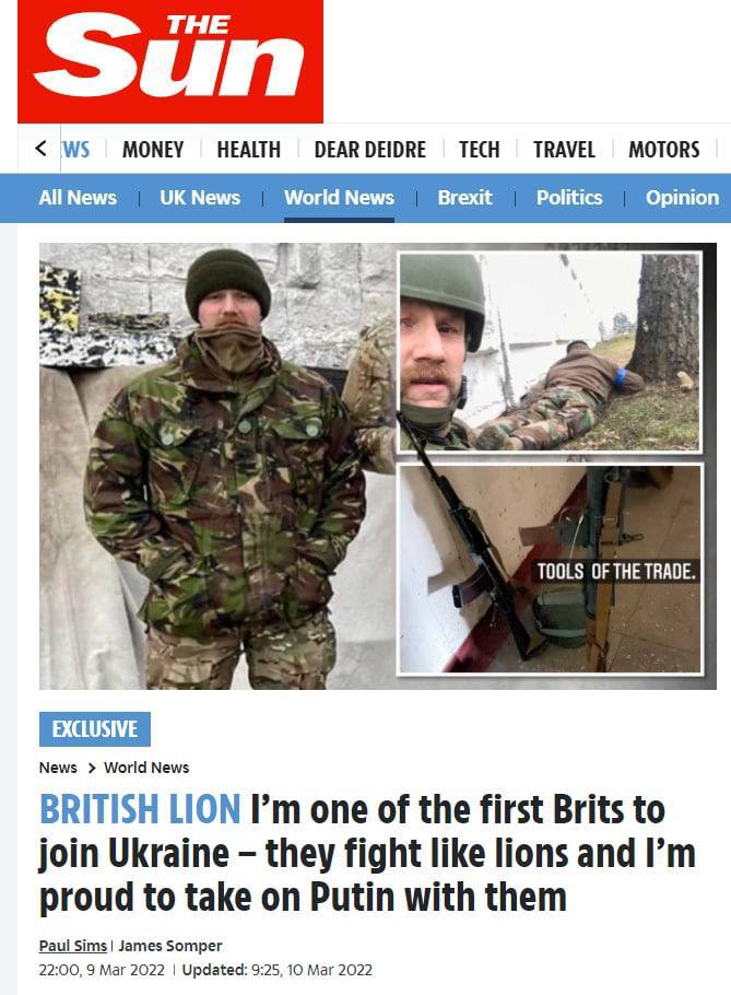 The Sun опубликовал интервью с Джейсоном Хейгом, который прибыл воевать в Украину.
