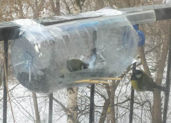 у тебя кормушка есть? как кошки к ней относятся?)смастрячил новую
