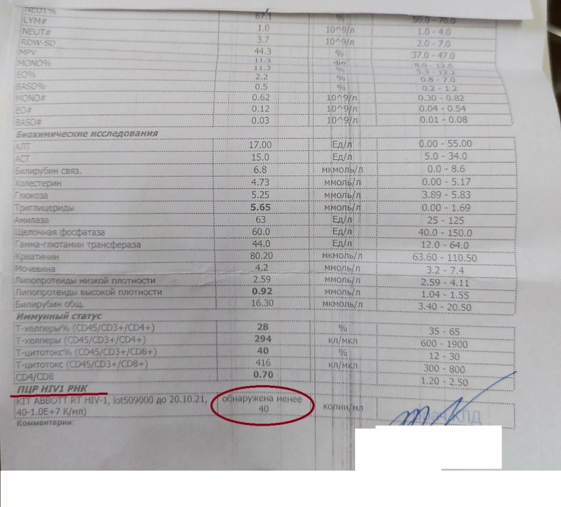Снизить количество копий вируса до менее сорока ни одна самая современная АТР не может.На самом деле я примерно понял, как правильно сформулировать результат этого теста. РНК вируса иммунодефицита человека первого типа обнаружена, количество копий менее 40/мл что ниже количественного порога определения используемой тест-системы Abbott RealTime HIV-1.
