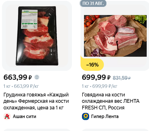 Еще не отзвенели дорогие яйца, как в Новосибирске повысились цены на говядину, — уже 943 руб/кг (ссылка ). А ведь пару лет назад она стоила 500.если верить властям то народ массово получает по 100 килорублей в месяц. Если вспомнить совок то при зарплатах в 100+ рублей говядина была по 1 рубль 90 коп, т.е. дороже)) а в коопторге 3 руб. 50 коп. так что...