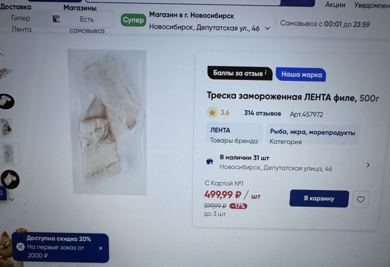 Поразилась!Так треску эту почистили, кости убрали, нарезали и вакуумно упаковали в прекрасные квадратные кусочки. Поэтому дорого.
