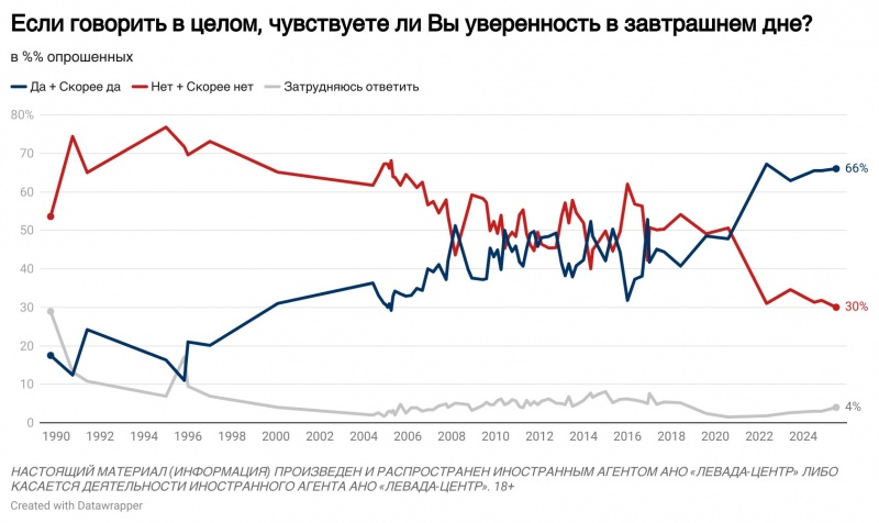 Мля, ... вот опрос от ЛевадыОпросы после 2021 года нерелевантны, нынче за плюрализм ответов можно и срок получить. Люди говорят не то, что думают, а что, по их мнению, одобряется властью. Чай, не при демократии живем.
