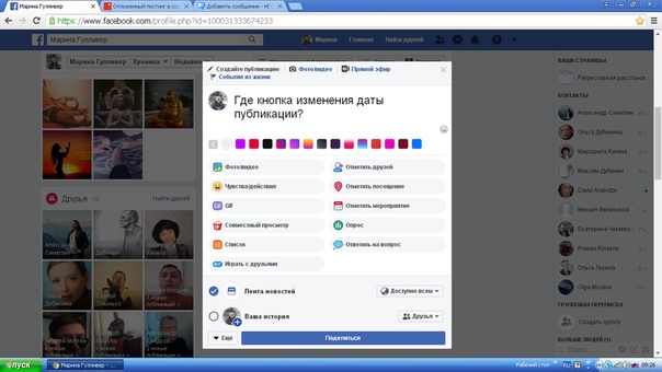 И вот первый. Как на личной странице сделать отложенный постинг. Нигде нет кнопки редактировать дату. Помогите как это сделать! На ютубе много роликов предыдущих лет, у них эта функция есть. Почему у меня нет?