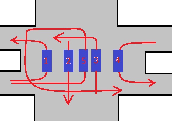 Именно там разворачиваться по малому - логичнее, т.к. иначе дважды пересекаешь "Вашу" траекторию.