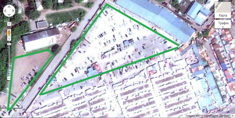 У входа в ленинский рынок припарковался на левой стороне дороги.