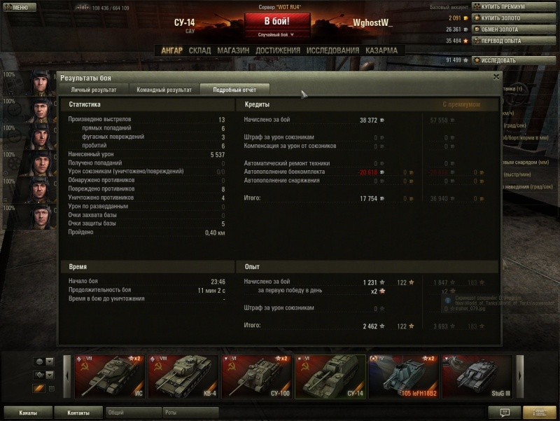 Получено опыта: 8 109 (x3 за первую победу в день)