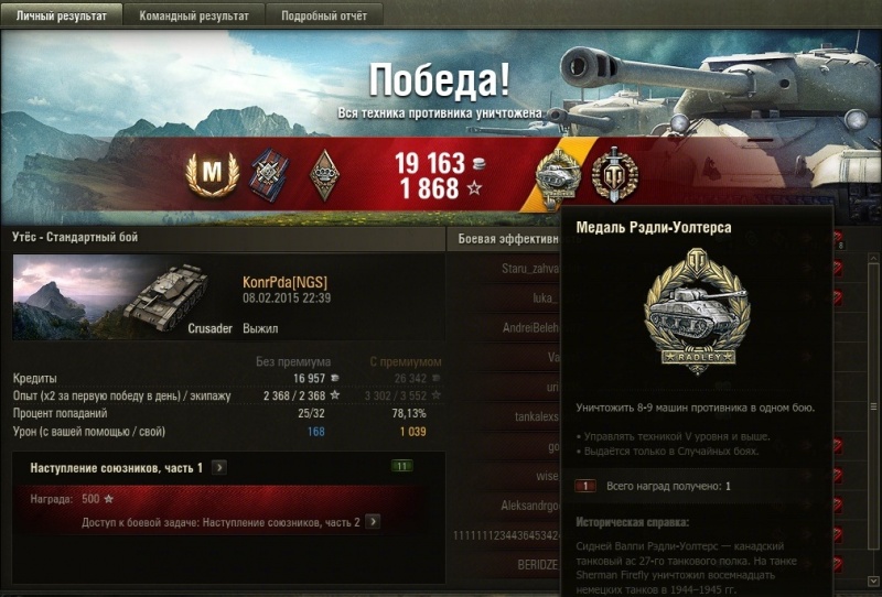 Ответ на сообщение Re: Сообщество виртуальных танкистов Автофорума НГС. (часть 8) пользователя IRS12