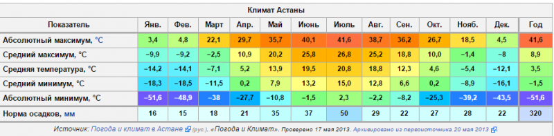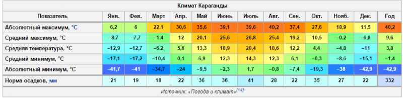 посмотри на среднюю температуру и скажи сколько зимних месяцев - с ноября по апрель, температура ниже -20