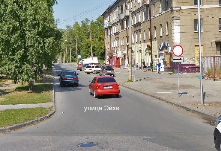 Я сворачивал с Первомайской на Эйхе. На Эйхе 2 полосы, я сворачивал на правую(ближайшую) и чувак полез на эту же полосу...Не обращайте внимания - буквально позавчера на этом же перекрестке сворачивал, только налево со стороны Первомайской, на Эйхе, а на правую полосу практически одновременно поворачивала справа маршрутка. Я притормозил, чтобы не создать помех маршрутке (ибо по ПДД буду виновен в ДТП), ибо там 2 полосы, конечно есть, но для легковых, на что получил "гудок в спину" от страждущего сзади, мол, "давай быстрее". Вот так вот...