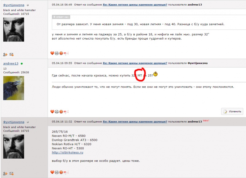 Ответ на сообщение Re: Какие летние шины наименее шумные? пользователя ФунтЦинизма