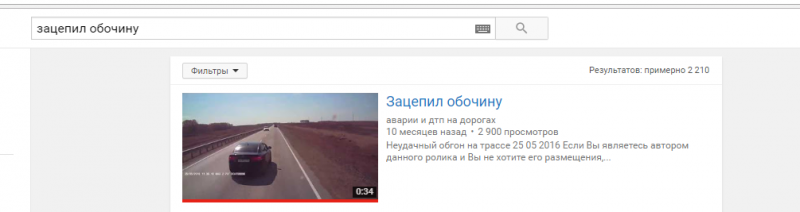 На запрос "цепанул обочину" только зимние видео, Ваня наверное целый день ютуб копал, чтобы летние кадры найти. И нашел только такого же неадеквата.