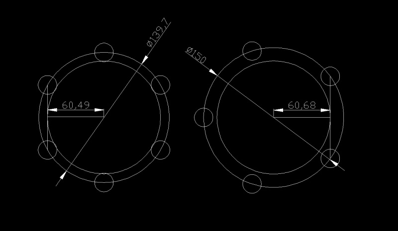 Посчитай расстояние от центра до корды между шпилек, именно вписанная в эти корды окружность является базой