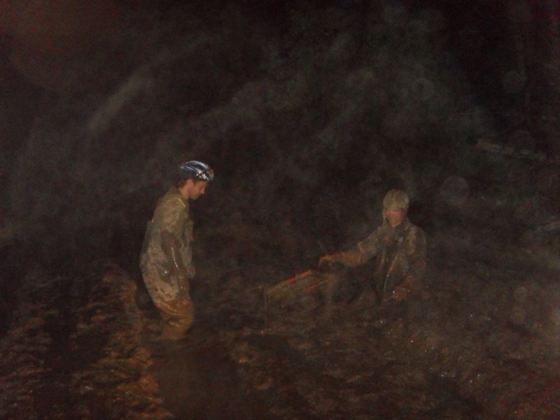 В 22:00 в районе 22-й точки, примерно в 7 км (это по прямой, на деле там все 10)от БЛ ходом садимся в длинную факу. Очень глубокая колея. Рубимся, джечимся, лазим в грязи по уши. Джек работает мягко говоря хреново - забивается этой грязью и не опускается, да и на подъем его надо долбить уже. Мытье в луже не помогает. Кое-как вытаскиваем авто назад, выбираем другую траекторию. Паджер проскакивает факу и в самом конце садится по диагонали на брюхо. 22:30 Кругом - скользкая жижа по колено. Ногу присасывает, вытащить - проблема. Хайджек работает уже хреново и на подъем, а опускаться не хочет принципиально. Промывки в луже не помогают. Выкручиваемся - вручную отверткой отжимаем пальцы джекапоочередно (гемор еще тот, да и опасно). Холодно, штурмана все сырые полностью и в грязи. Понимаем, что не финишируем уже никак, нам бы просто выбраться. Андрей звонит в БЛ - Банзай тоже где-то в тайге завис. Все, привет: эвакуация - завтра, после 12:00.