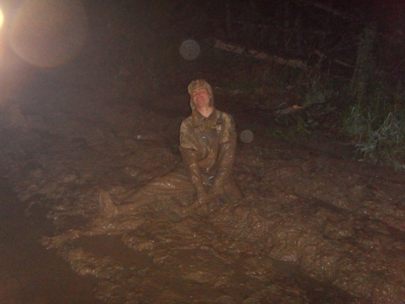 Начинает светать. Идем. Заяц дорогу перебежал разок. Идти хреново - все влажное и натирает кожу шо ппц. Плюс холодно. Приходится двигаться так, чтобы мокрая холодная грязная куртка по возможности лишний раз не касалась тела. Как хорошо, что на голове танкошлем! Он, оказывается, неплохо греет. По дороге, примерно в 3:00 встречаем Банзай, идущий на помощь. Егоров уезжает с ним, мы идем дальше.