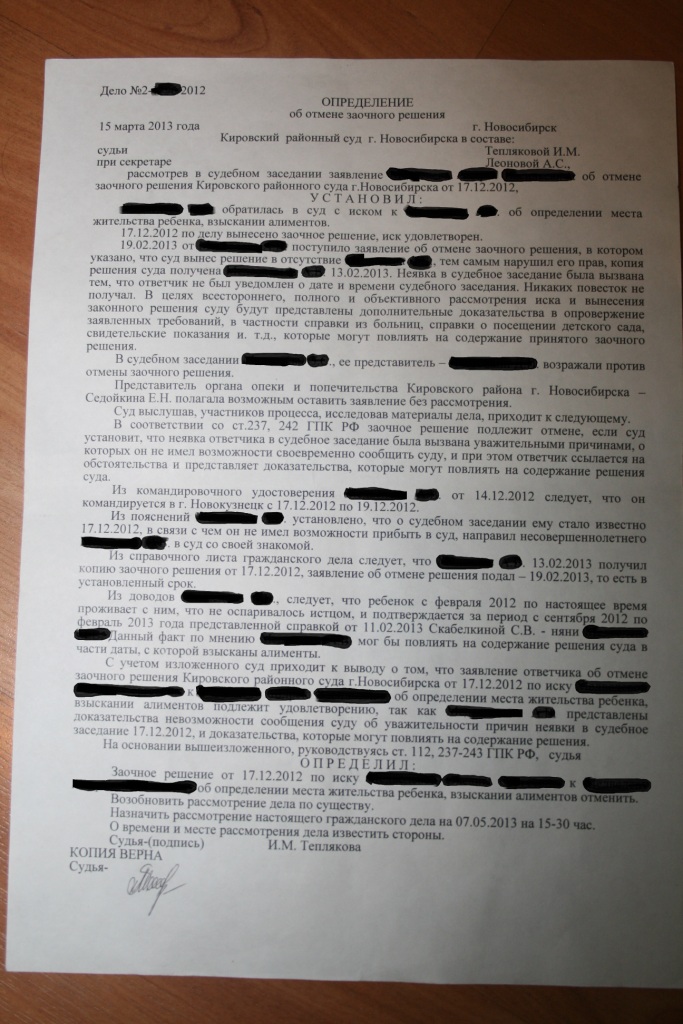 Кстати, судя по первому определению - во встречном иске вам отказали, иск матери удовлетворили точно так же, как и в первом заочном решении, место жительства ребенка определено с ней. И чего - будете рассказывать, что апелляция полностью отменила это решение? Ну-ну.