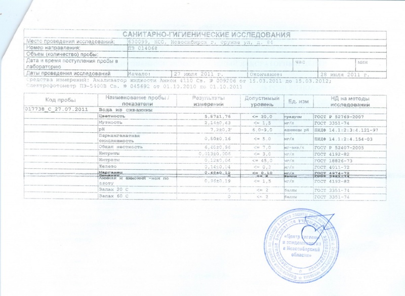Ответ на сообщение Re: Анализ воды (химический, развернутый анализ) пользователя bamper