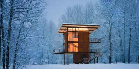 или сваи отпилил и уплыл на дрогое место. Или вообще в кругосветку зарядил...не-не, сваи - это пневматика выдвижная, а под домом баласт для сплава. там с обратной стороны не видно, но установлен катерный мотор. Типа опустился во время прилива, и переплыл на новое место. А катер для прикрытия...