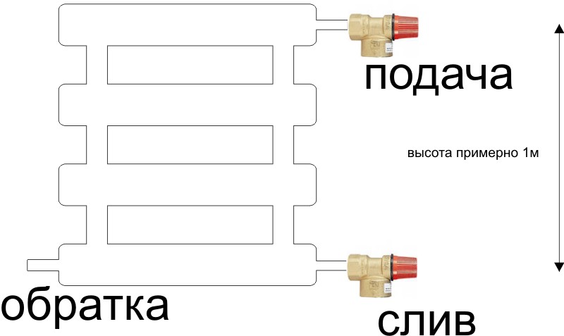 Ну, об этом я и написал. У меня один аварийный клапан висит прямо на сливе угольного котла, а второй - возле элекрического. Как уже писал, сработали прям почти одновременно.В принципе ГБ и теоретически и практически разбросать по отдельности возможно - манометр на котле, воздухоотводчик в верхней точке - но предохранительный клапан следует ставить на выходе из котла. Это как если бы на радиаторе (где односторонняя подводка с байпасом) поставить регулировочный вентиль на подаче, то теплоноситель, создав какое-то избыточное давление перед вентилем, сразу уйду через байпас. Если вентиль поставить на обратке, теплоноситель так же уйдет в байпас, но уже предварительно создав избыточное давление в радиаторе. И это завышенное давление будет сохраняться в радиаторе. Так же и с котлом. Котел сам по себе давит + насос. Если предохранительный клапан стоит на обратке у котла, то избыточное давление сначала пойдет через подачу-по системе-до обратки и только затем сбросится через клапан. Но сбросится до определенного, отрегулированного на клапане давления, а в системе все равно будет давление несколько большее. Если клапан стоит на выходе из котла, откуда начинается это избыточное давление, то клапан сработает гораздо раньше.
