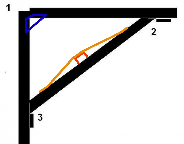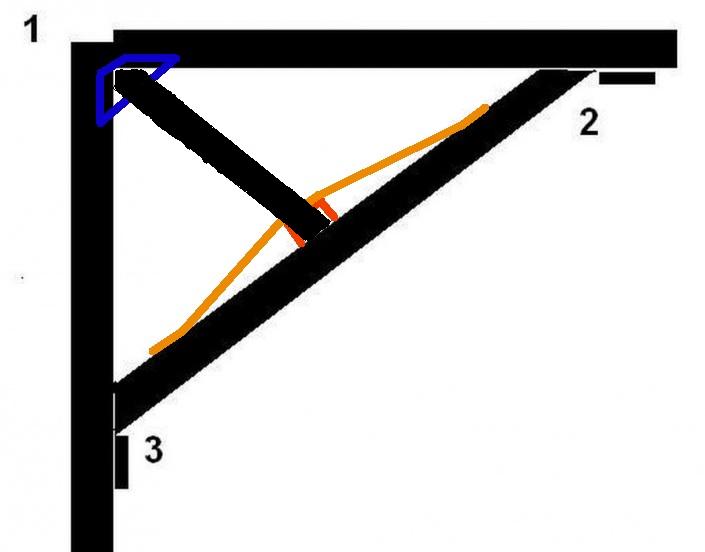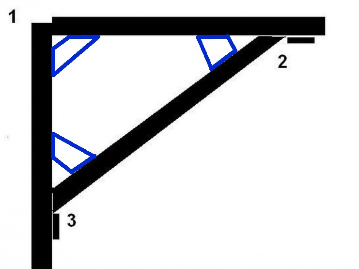 Живет такая "нашлепка" сама по себе, никого-ничего не трогает...усилить укосину ещё одним швеллером и приварить из швеллера биссектрисуНо так и такую укосину из швеллера можно минимум в 5-ти вариантах расположить, и это разные варианты с точки зрения косячности от накопления в местах швов конденсата, по разрывной нагрузке на шов в узле "1" (если пойдет деформация), по удобству наложения швов и т.п.