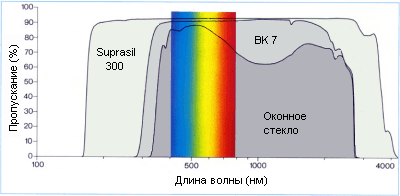 3. Исследования показали, что обычное стекло не пропускает ультрафиолетовое излучение солнца в диапазоне УФВ – (280-320) нм, а излучение в диапазоне УФС – (200-280) нм не достигает поверхности Земли. Никто еще не смог «загореть» находясь за стеклом обычного окна. Стекло пропускает только небольшую часть близкого к фиолетовой части спектра «полезного» ультрафиолетового излучения (УФА). Этого излучения достаточно для «выцветания» краски на отделке внутри помещения.
