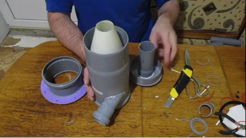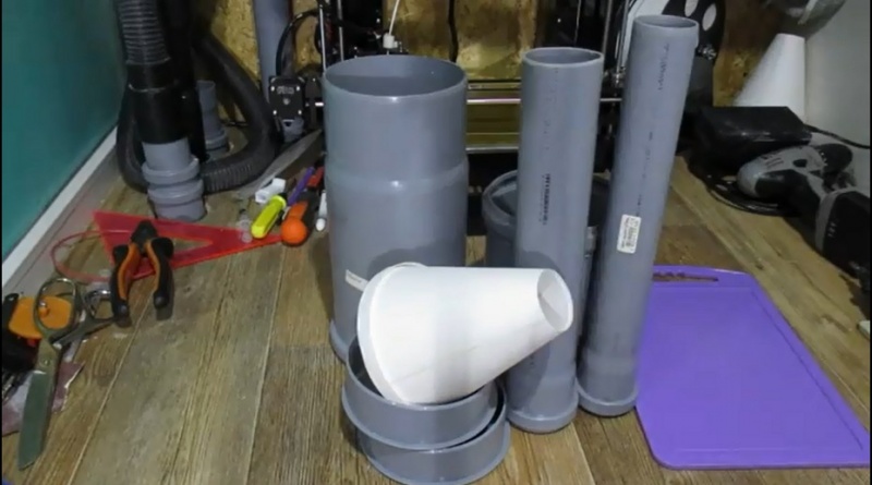 Вы меня не так поняли. На основе трубы на 110 изготавливается сам циклонный предфильтр, который затем монтируется на практически любую тару (в качеству бункера для мусора), начиная от пластикового ведра из-под отделочного материала, и заканчивая хоть бочкой на 200 литров (тут уже каждому по его потребностям).