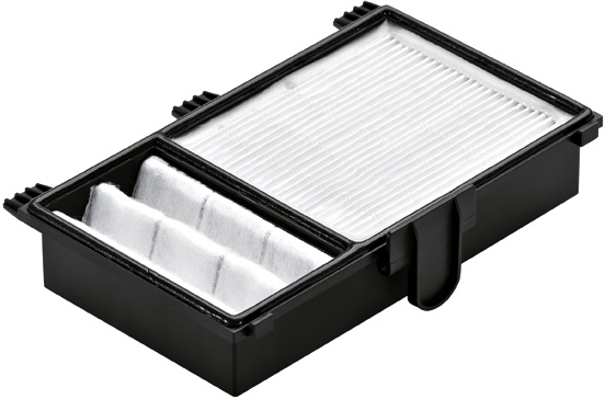 Дома Кёрхер 5500 Акваселект на улице AKIRA VC-S4199W . В ссылке есть для Кёрхер 5500 Акваселект ну там только для HEPA где есть полотно у AKIRA VC-S4199W стоит дешёвый фильтр в бачке но с автоотключением при превышении уровня воды в резервуаре т к корпус крепится застёжками впереди и сзади пылесоса к бачку с водой то между корпусом и дешёвым фильтром ложится полоска полотна или две чтобы застёжки срабатывали . Воздух с мелкой пылью проходит через дешёвый фильтр и полотно .