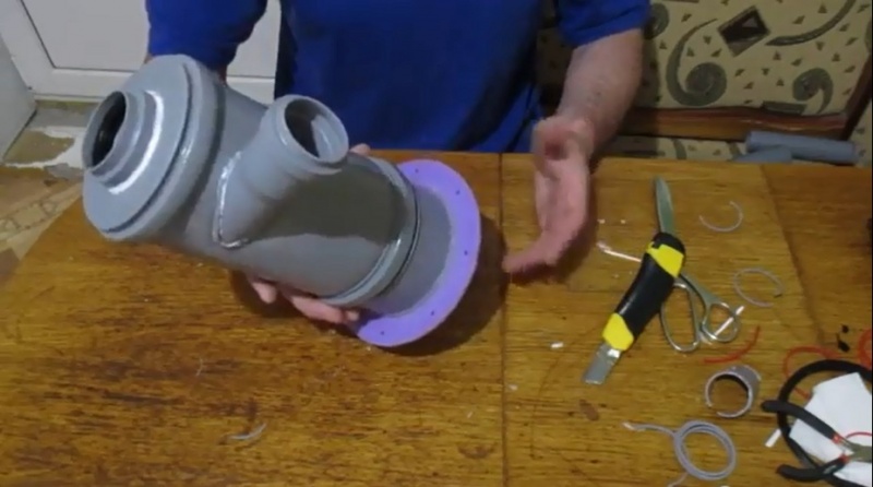 6) Вы нашли на ютубе один из самых (из числа представленных там) технологичных в быту способов исполнения циклона, но и его можно заметно упростить, т.е. не портить полипропиленовую разделочную доску и избавиться от необходимости сварки кольца из неё с половинкой муфты на 110.