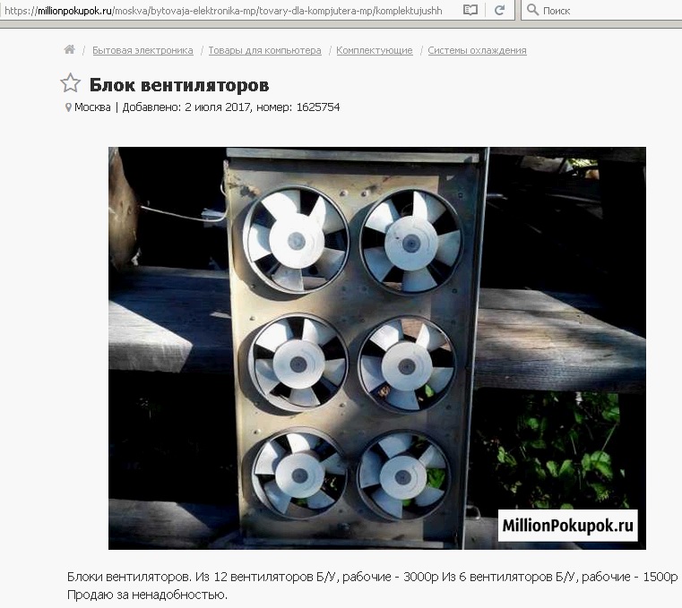 В ответ на: В частности, оно уже давным-давно стояло перед блоками вентиляторов систем охлаждения ЭВМ (нифига ещё не персональных и очень НЕнастольных ).