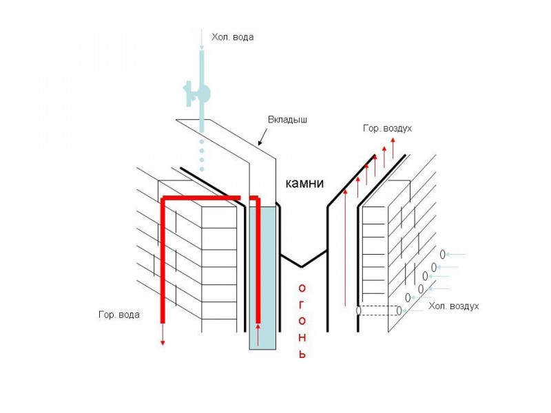 Я предлагаю поставить второй стационарный узкий бак на кирпичи ( на схеме в верхний правый угол ).Этот вариант испробуем в эти или следующие выходные - потом отпушись, но все больше и больше прихожу к мысле о замене печки