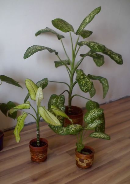Описываю: очень большой горшок, в нем несколько дефинбахий, если не ошибаюсь-4, три поменьше (см.30-50) и одна самая высокая, примерно 1,5 метра. Самовывоз!! Предупреждаю-довольно тяжелый цветок.Территориально-Родники.
