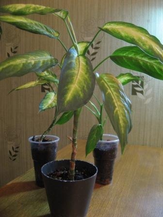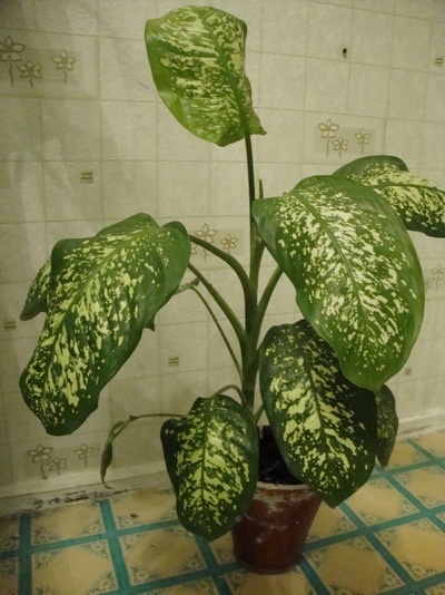 диффенбахия Сегуина за 300рубэтому дифф. уже трудно жить - горшочек мал, а мне пересаживать не то что не охота, а думаю может найдет своего хозяина. Места ему мало, поэтому и сбросил 4 нижних листа осенью, а были листья почти до горшка.