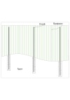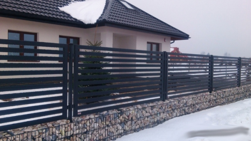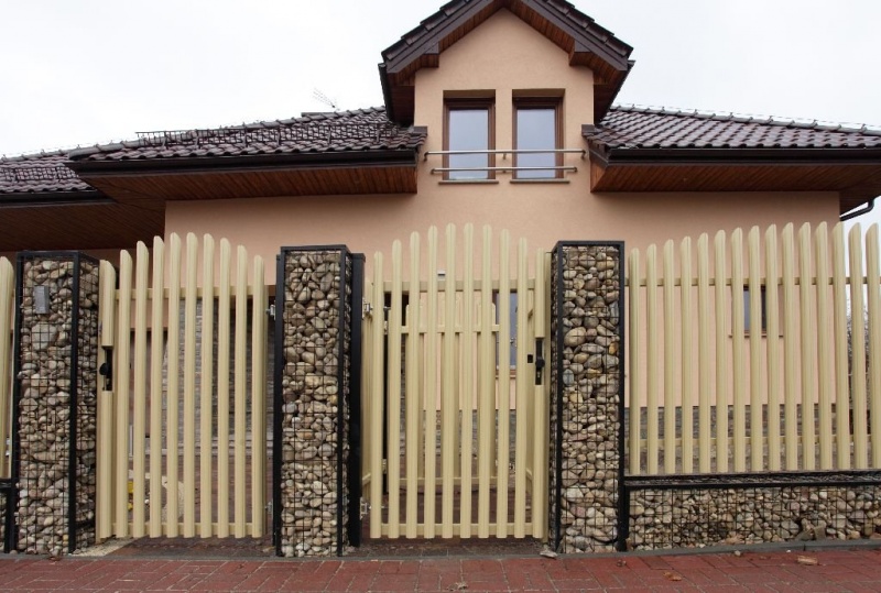 У меня уже есть столбы для забора, высота, я думаю, до 1,5 м. Круглого сечения, на них наварены пластины с отверстиями для крепления горизонтальных элементов. Шаг уточню, но делалось для деревянного забора.