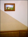 Блин, вот не могу красиво написать - а перед глазами прям стоит... ((Наверно имелось ввиду что то типа этого (см. файлик). Я так на кухне сделал. Обои одной текстуры (мешковина) но разные по цвету