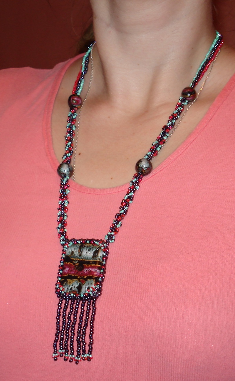 Очень люблю бисер, к сожалению не удается уделить достаточно времени этому занятию. Потихоньку осваиваю разные техники бисероплетения. Последнее увлечение, это вышивка бисером. Сделала вот такое колье.