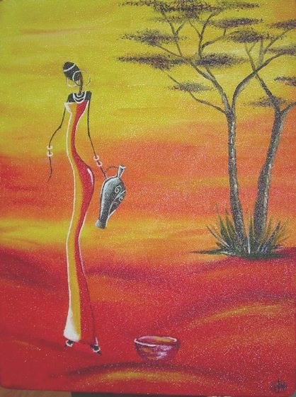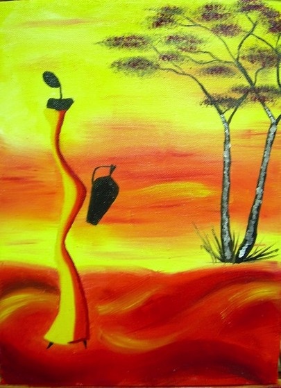 Когда я впервые увидела эту картину, на которой изображена девушка с кувшином, я не верила, что я могу так нарисовать. Но с Ириной все показалось легко и просто. За первое занятие (3 часа) мы успели подготовить фон картины, нарисовать девушку и дерево. Осталось всего ничего