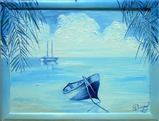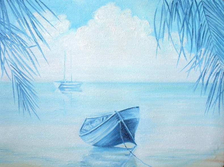 В общем я сама, дома, нарисовала еще две картины с лодками (с того же сайта) и еще парную картину к девушке дорисовала. Чуть позже, когда они высохнут, сфоткаю их и выложу здесь