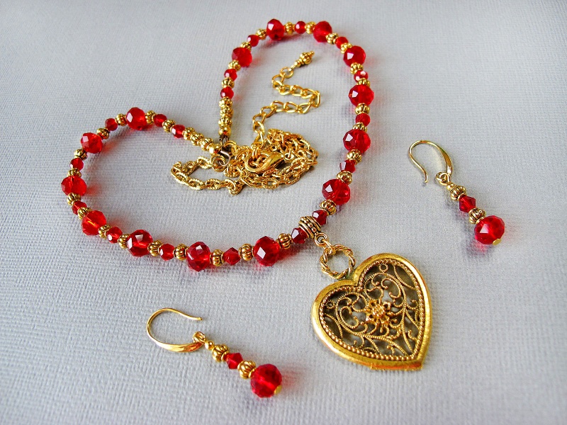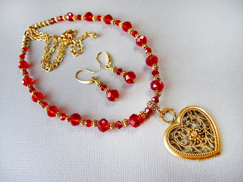 КОЛЬЕ И СЕРЬГИ "ОГОНЬ ЛЮБВИ" - К ДНЮ ВЛЮБЛЕННЫХ