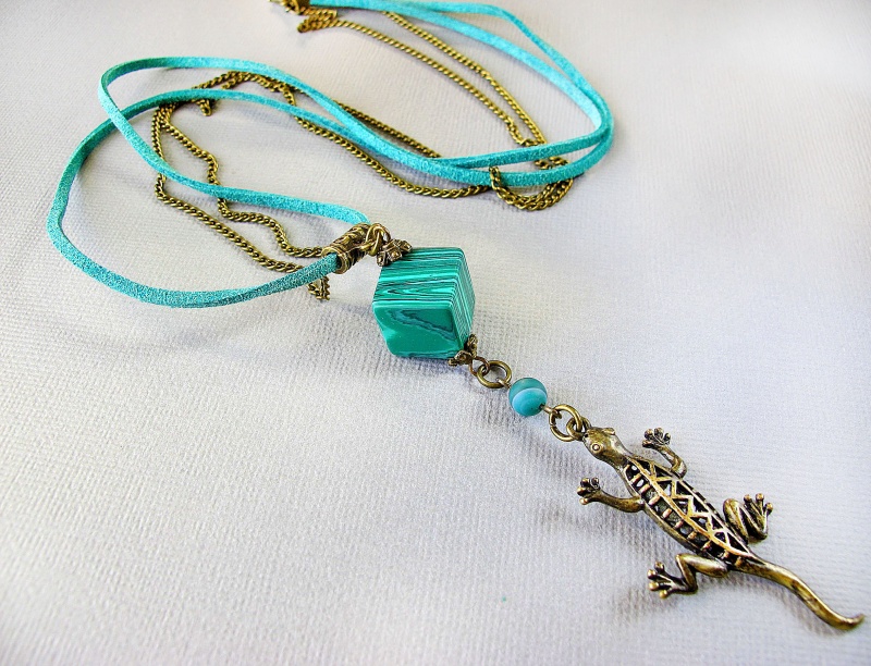 Цепочка украшена замшевым шнуром насыщенного малахитового цветаОтвет на сообщение Re: Эксклюзивная дизайнерская бижутерия ручной работы, все делаю сама! пользователя Соня5