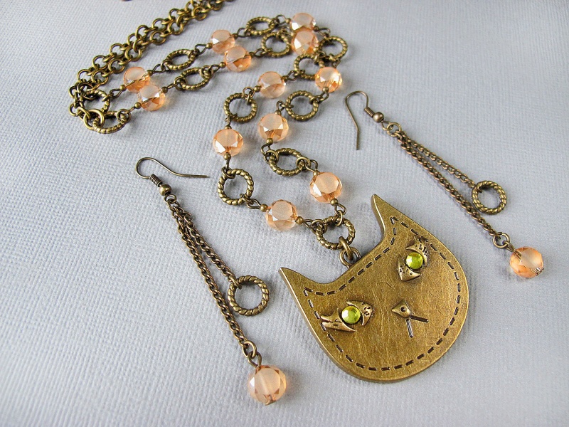 Колье-кулон изготовлен на основе фурнитуры под античную бронзу.