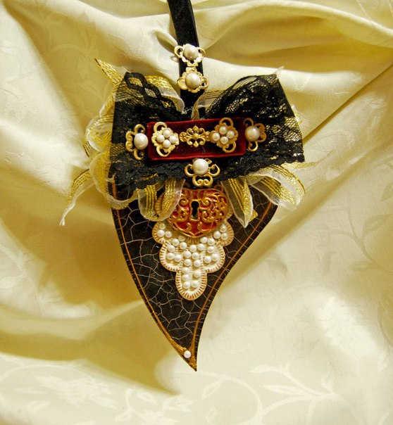• Интерьерная подвеска"Маска" бархат, жемчужины, кон