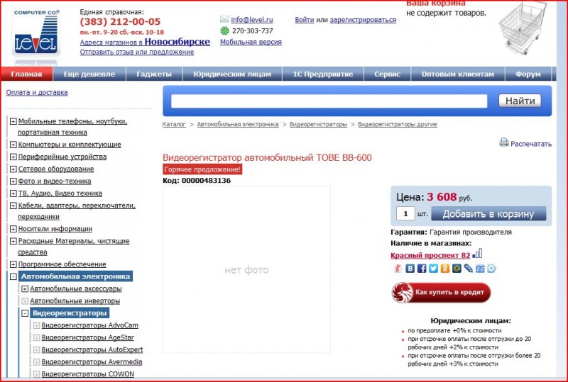 Позвонил сейчас в "Левел". Соединили с тем же магазином на Красном проспекте. Разговаривал с исполнительным директором Кретининой Валентиной Николаевной.